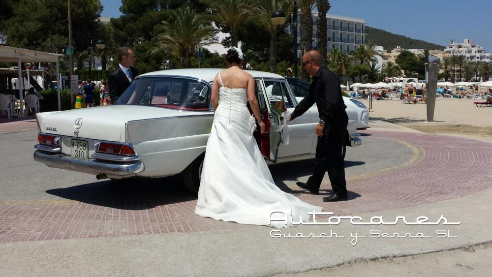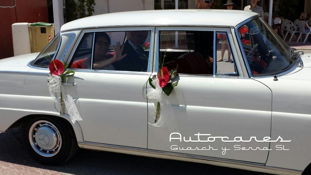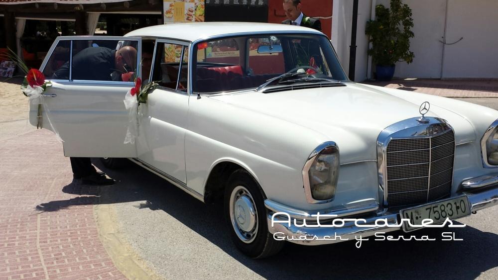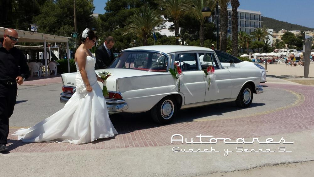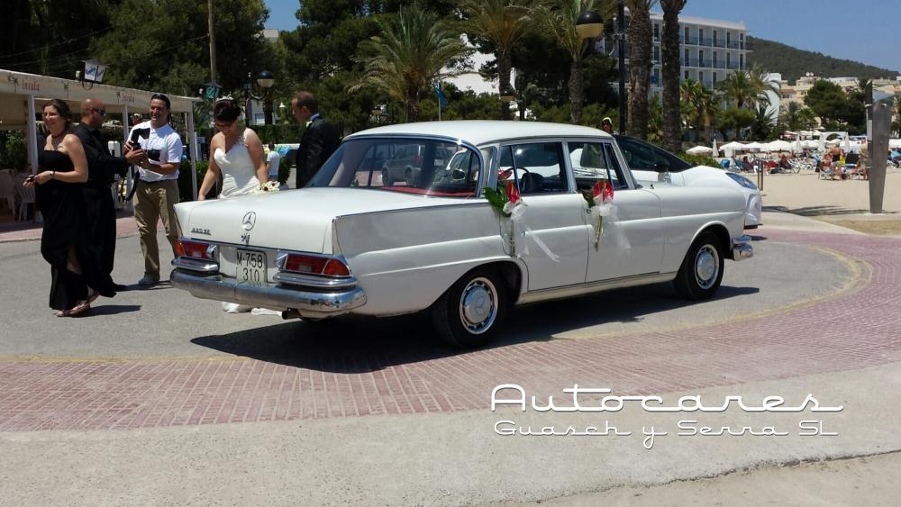 Hoy hemos hecho un servicio de coche de novios con nuestro Mercedes Clásico de Santa Eulalia, Puig den Missa al Restaurante La Casita.