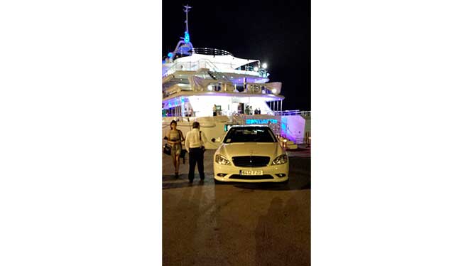 Estos días estamos haciendo servicios de coche de lujo con chófer a la Familia Real Saudí. En el Yate Moonlight. En la Marina Ibiza Port Town. 2014.